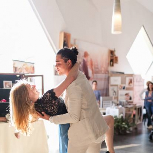 Jean-Guillaume Weis bietet Paaren hier eine Gelegenheit Hochzeitstänze einzustudieren und zu proben.